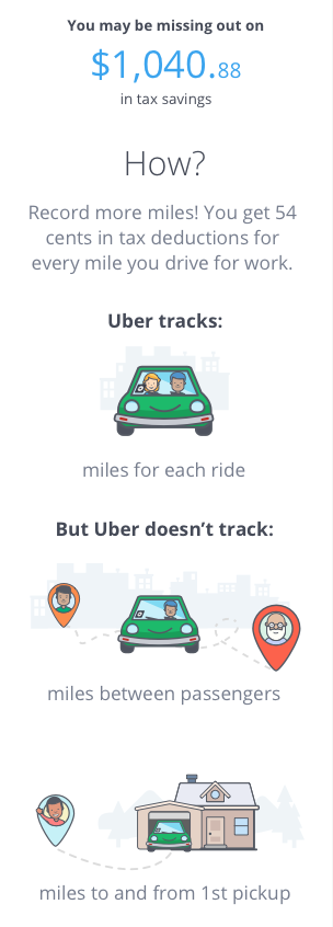 One of the things we tested in our prototype round was the "Tax savings with Stride" amount. When we presented that information by itself, drivers were often skeptical. They felt that it was too good to be true. Surely you can't cut your tax bill in half?